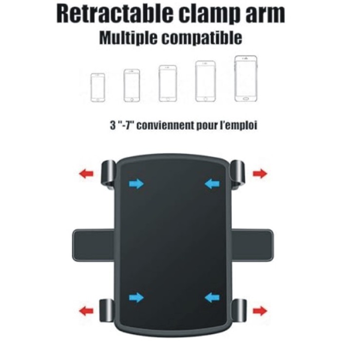 1. Retractable clamp arm: compatible with 99% of mobile phones on the market, mobile phone screens from 3 inches to 6.5 inches are suitable for use, width between 48 to 100 mm can be used.