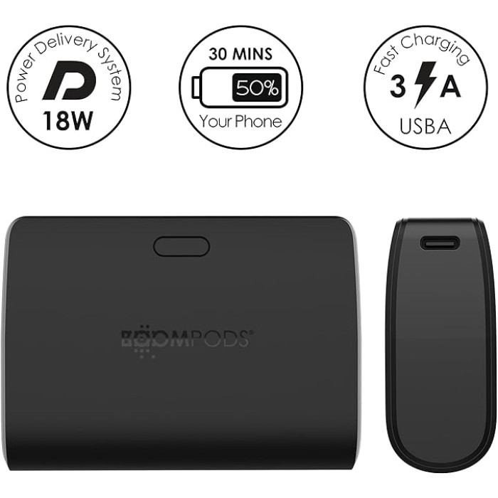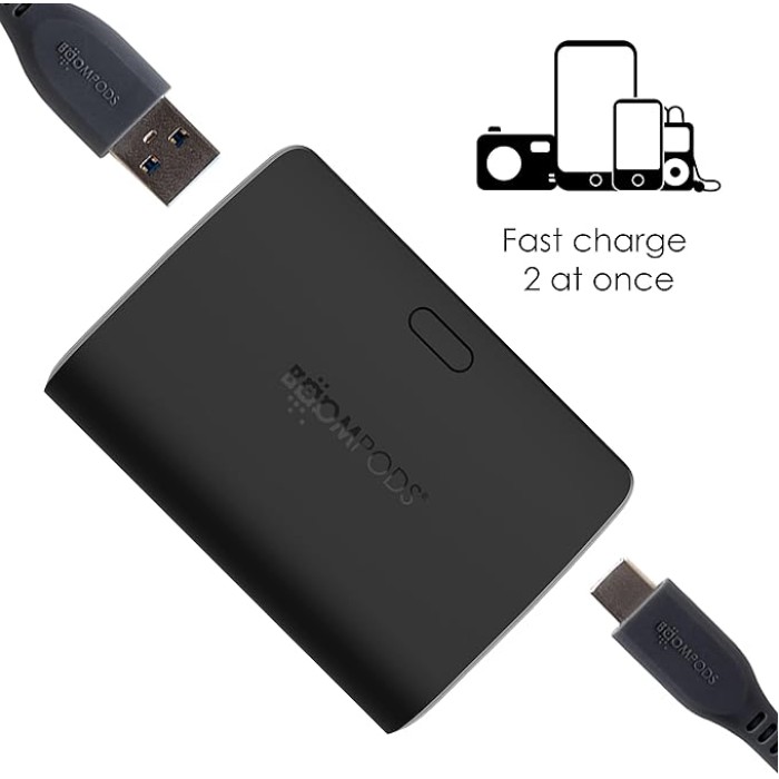 • UNIVERSAL COMPATIBILITY: Powerboom Powerbank is the small, universal, smart and reliable option. This travel charger can be used as a USB or USB-C power bank so you can charge smartphones, tablets or other electronic devices