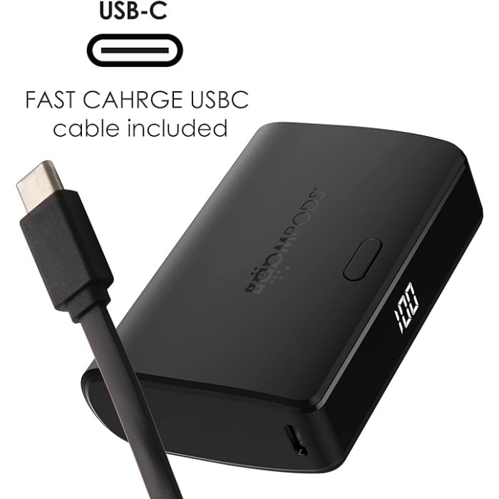 • Compact design: With the Boompods Mini external battery you can charge your devices while you’re on the go. The compact design fits in your pocket, so you’ll have power all weekend long. This lightweight Mini power bank weighs only 95g