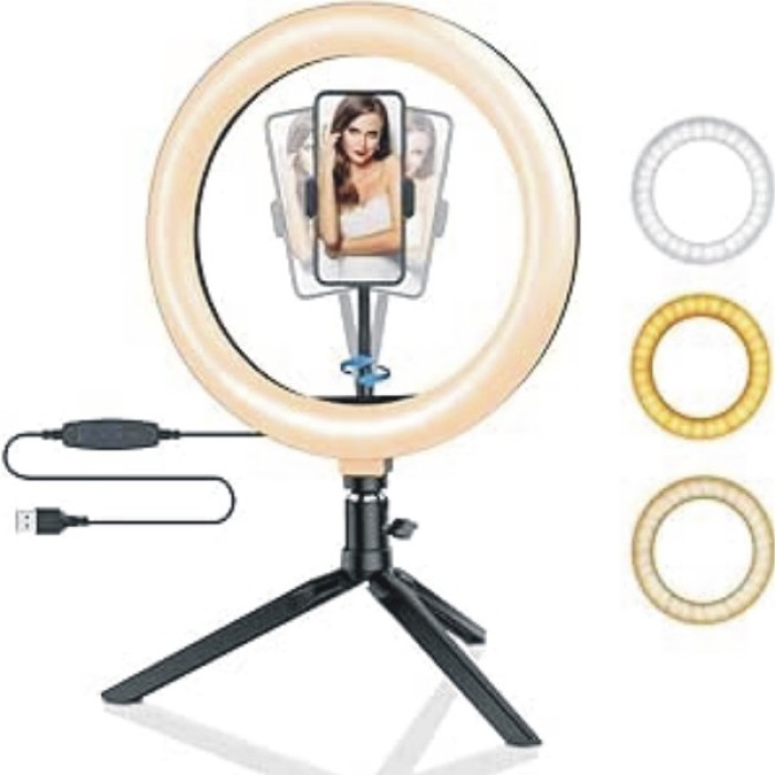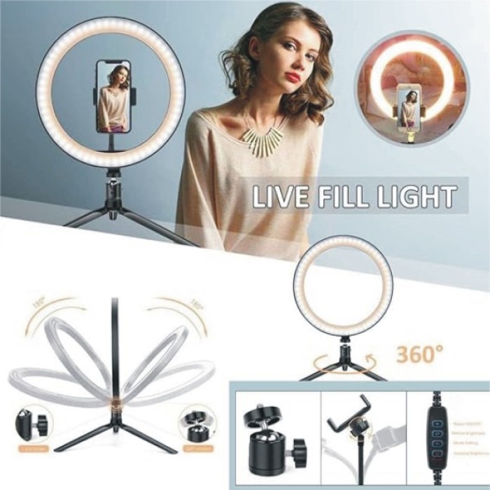 Capture perfect photos and videos with the 10-Inch Ring Light with Bracket. This versatile ring light comes with a mobile phone tripod, providing stable and professional lighting for all your photography, videography, and live streaming needs. Adjustable brightness and color temperature ensure optimal lighting in any setting. Ideal for content creators, vloggers, and beauty enthusiasts looking to enhance their setup with high-quality lighting.