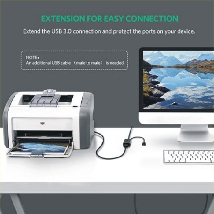 1. USB 3.0 active extension cable offers an easy, inexpensive way for connecting a USB device, like printer, scanner, camera, WLAN card to your computer over long distances, which is the smart solution for home and business desktop computer setups.